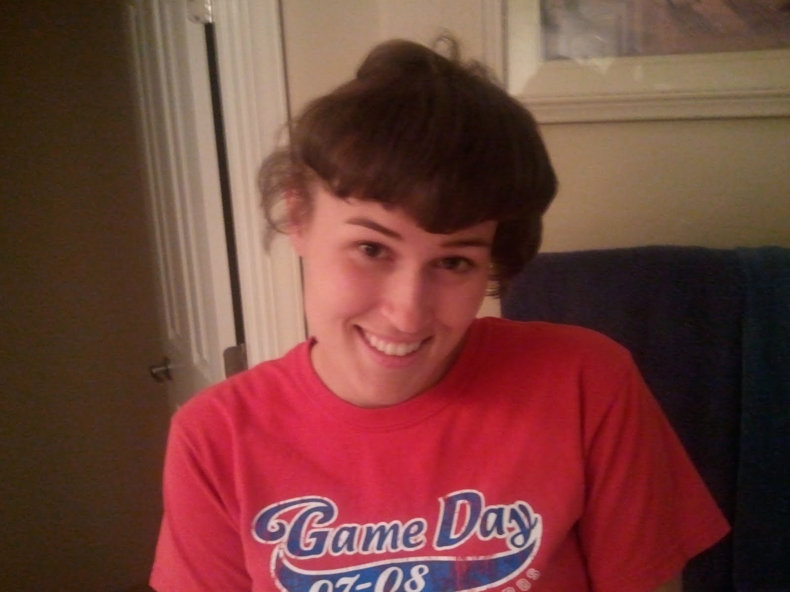 Okay so my mother feels it necessary that you all get to see a few pictures of me and my new hair (that has been recently cut). She took a few pictures when I was wearing make-up and normal clothes so she may be surprised when she sees this but it's all good!